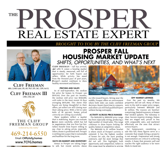Each issue includes real estate market data, tips for buyers and sellers, and local insights for Prosper, TX residents. Stay up to date on housing trends, home values, and community news—all in one place.